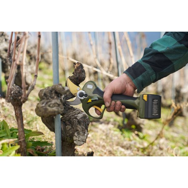 Ce sécateur électrique est conçu pour les travaux de taille en viticulture et en arboriculture.