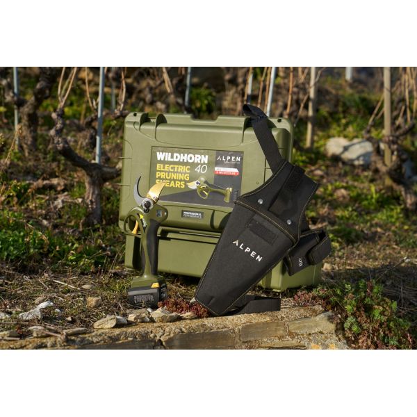 Le sécateur est également livré avec un câble d'extension permettant de déporter la batterie dans un étui à la ceinture et ainsi alléger l'outil en main et gagner en liberté de mouvement.