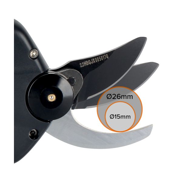 Sécateur électrique sans fil équipé d’un nouveau moteur brushless (sans charbon) puissant et performant et d’un système électronique avancé pour répondre aux normes les plus strictes et augmenter la productivité.