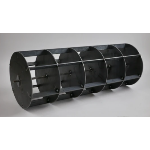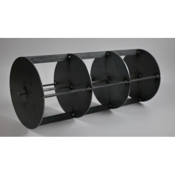 Rouleau en acier non traité permettant de dessiner les quadrillages de taille égale sur un sol préparé pour des plantations en ligne.