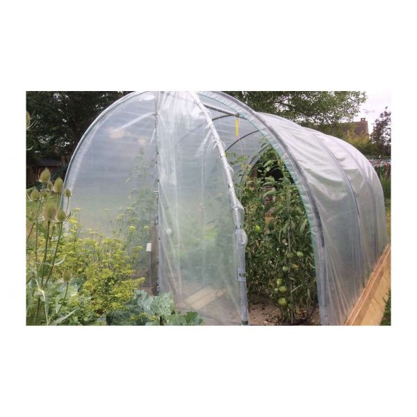 La serre Essentielle est livrée avec une embase complète au sol et un système permettant de bien centrer la bâche de toit lors de son montage.