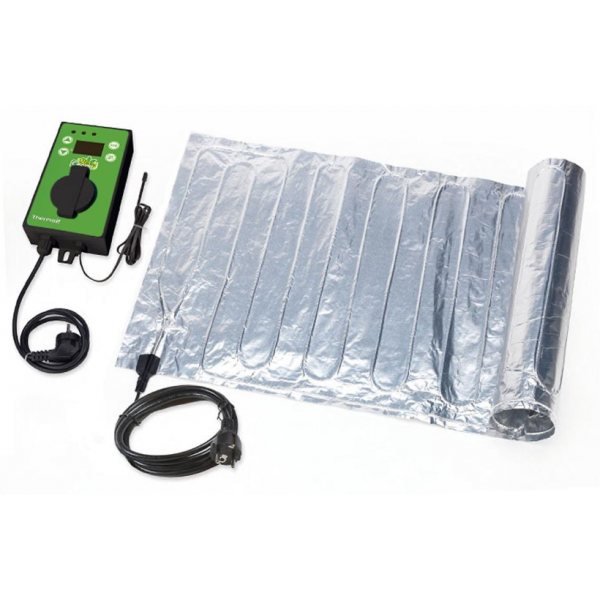 Le tapis chauffant est livré prêt à l'emploi, équipé d'un thermostat (livré avec) pour contrôler facilement la température.