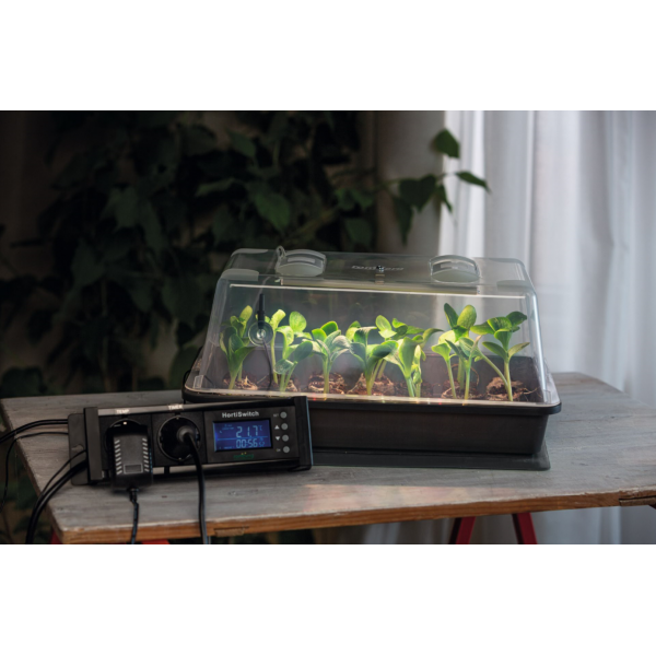 Mini serre rigide de dimension 38x24x19 cm, avec aérateurs et trous d'aération latéraux.