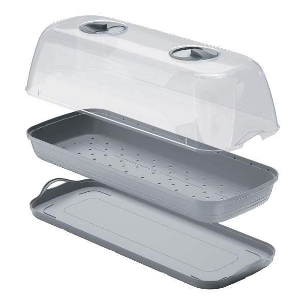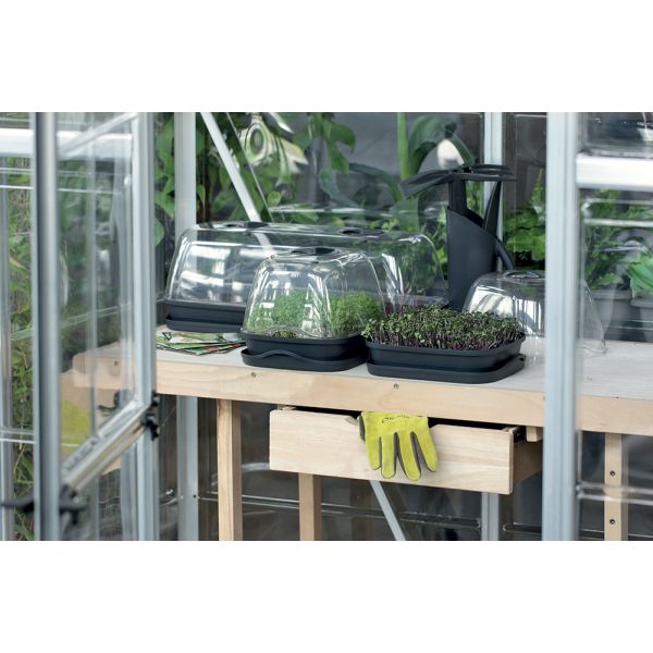 Mini serre en polypropylène. Equipée d'un plateau et d'un fond percé pour éviter l'eau stagnante. Elle est également pourvue d'un couvercle transparent, muni de deux aérateurs coulissants pour un réglage optimal du niveau d'humidité.