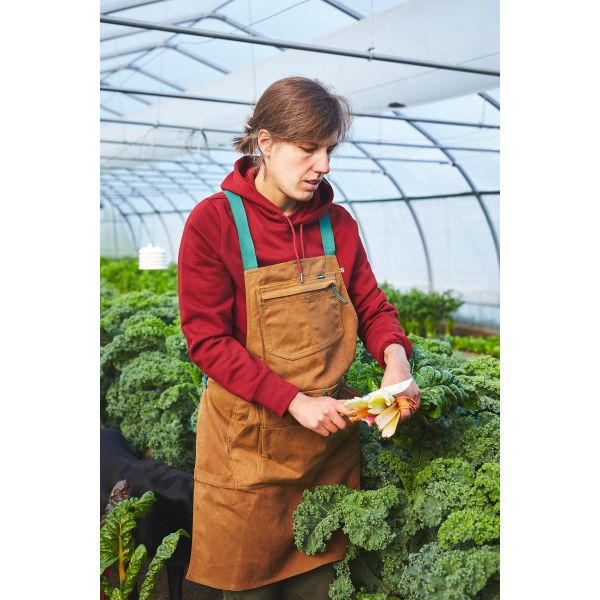 Les sangles croisées réglables à l'arrière du tablier aident à assurer une répartition équilibrée du poids pour rester confortable.