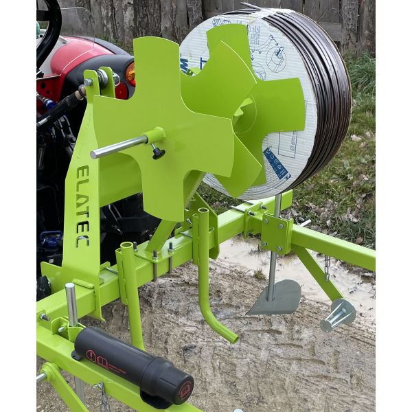 Permet de dérouler simultanément jusqu'à 2 tuyaux souples d'irrigation, déplaçables sur la largeur du châssis et amovibles.