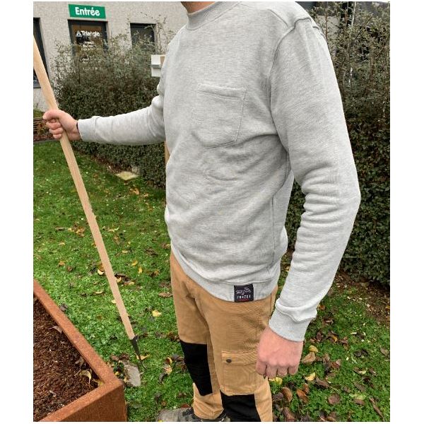 Sweat en coton bio avec épaules renforcées, coupe longue, poche poitrine.