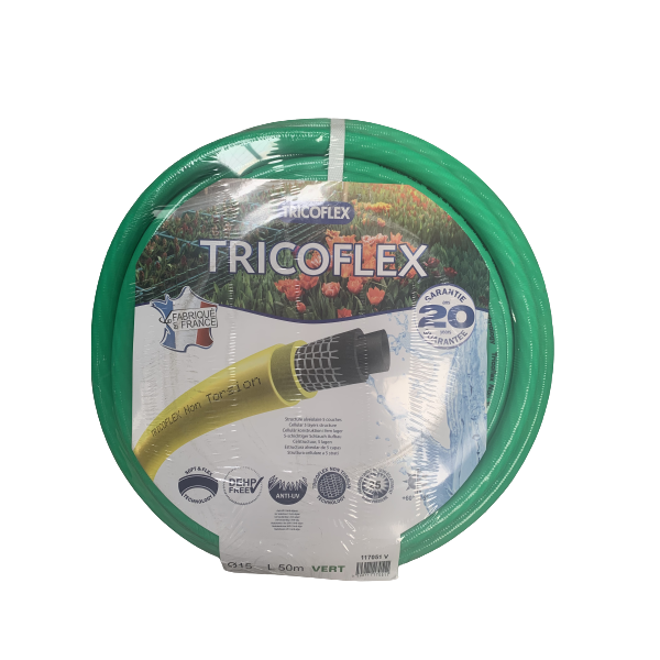 Très épais et constitué de matières de qualité, le Tricoflex présente une remarquable résistance au vieillissement et une exceptionnelle souplesse. Son revêtement extérieur en PVC vert apporte une bonne protection contre l'abrasion et les rayons ultra-violets.